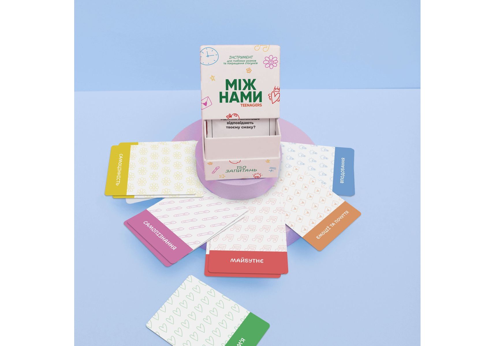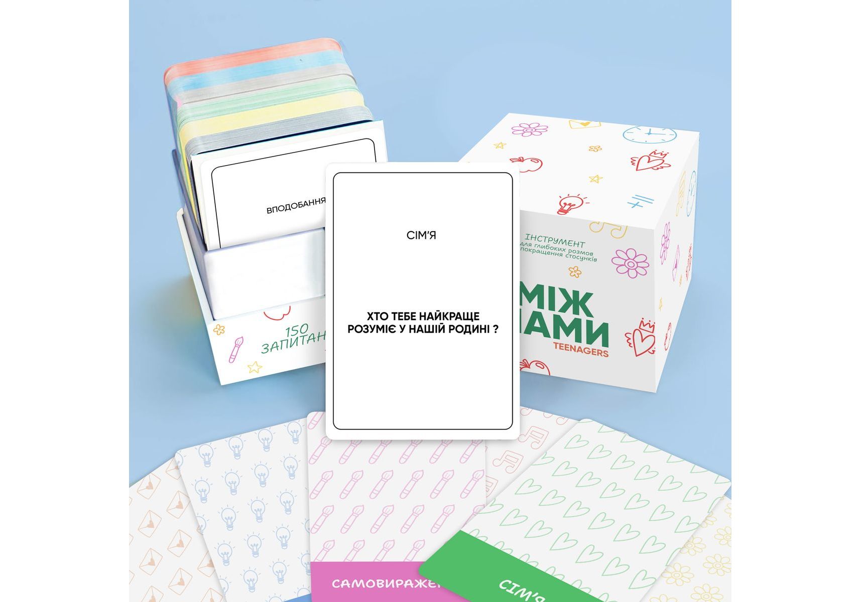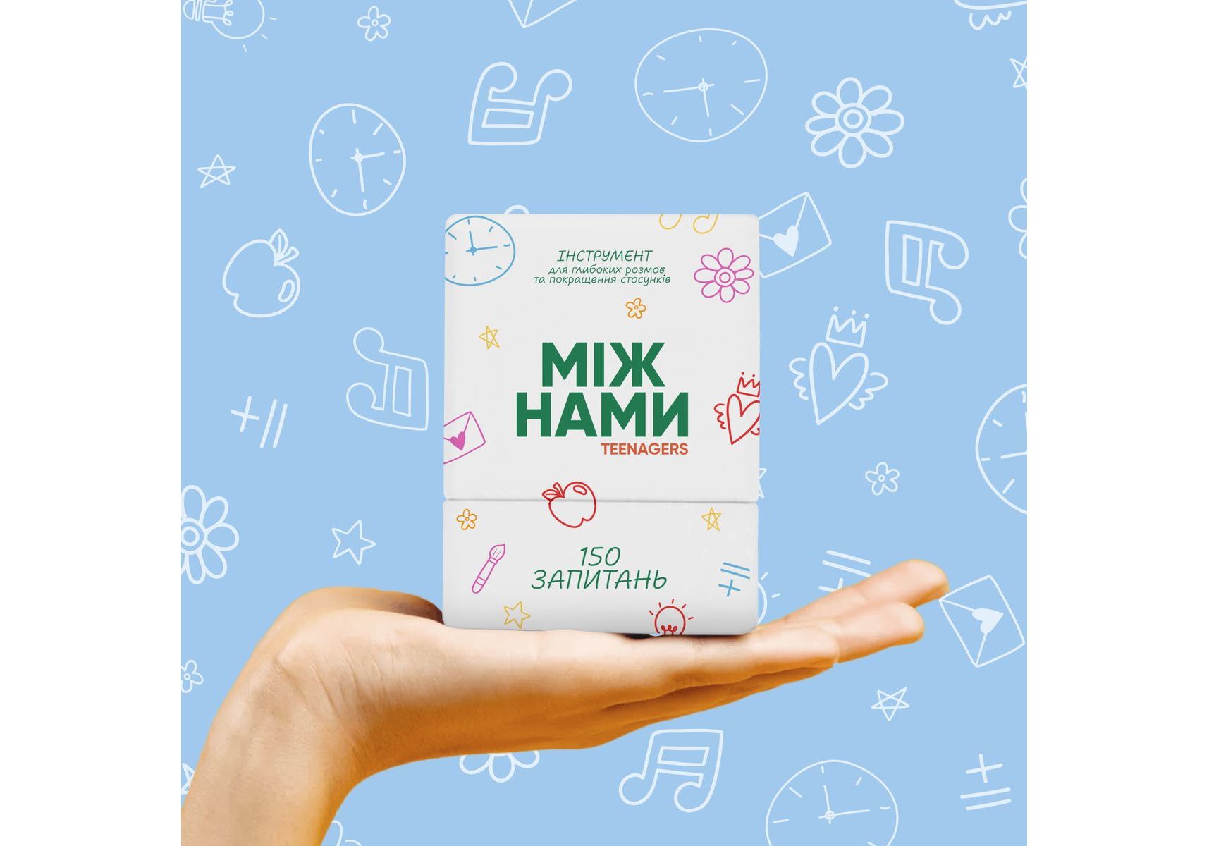 ««»УЗНАЙТЕ ИСТИННЫЕ ПОТРЕБНОСТИ И ЖЕЛАНИЯ РЕБЕНКА. Одна из самых важных вещей, которую вы можете сделать для своего ребенка - это услышать его. Если вы хотите весело провести время за качественным разговором, одновременно укрепляя ваши совместные отношения - настольная игра Между Нами: Teenagers - это отличный инструмент для этого. СОЗДАЙТЕ ДРУЖЕСКУЮ И ПРОЧНУЮ СВЯЗЬ С РЕБЕНКОМ Узнайте, какую пользу вам принесет игра Между Нами: Подростки 01. Узнайте внутренний мир своего ребенка Узнайте о чем мечтают ваши дети, чего они боятся, как чувствуют себя внутри и из-за чего переживают. Наши карточки помогают превратить «сложный» разговор в легкую игру. 02. Станьте друзьями, проявляя любопытство Превратите отношения из формата родители-дети в друзья-друзья. Поймите потребности подростка с помощью конкретных вопросов и станьте лучшим другом для своего ребенка. 03. Поймите мечты и планы своего ребенка на будущее Помогите определить приоритеты и поставить цели, чтобы показать, что вашему ребенку все под силу, если рядом есть люди, которые всегда поддержат. «"» Переведено с помощью DeepL.com (бесплатная версия)