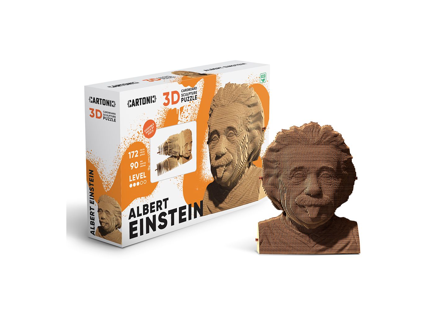 ЧТО ТАКОЕ CARTONIC? ЗD пазлы Cartonic — это простой и экологичный способ создать собственный образец картонного искусства. Тебя ждёт готовый набор для пошаговой сборки известной личности или объекта своими руками. Это будет легко как 1-2-3. Во время сборки ты буквально погрузишься внутрь культовой фигуры. А когда закончишь – то сможешь сделать свой артобъект еще более уникальным, раскрасив его, и наслаждаться им як декором дома. Но мы должны предупредить: как только ты соберешь этот пазл, тебе может понадобиться новый, потому что в этом процессе сложно остановиться. ПОЧЕМУ ЭТО ИКОНА? Тот самый физик и изобретатель, который доказал, что в мире всё относительно. Автор формулы «e=mc2» и выражения: «Кто никогда не делал ошибок, тот не пробовал ничего нового». Как-то он показал фотографу язык и это фото все до сих пор носят на футболках. Интересно, какие идеи еще скрывались в его голове?