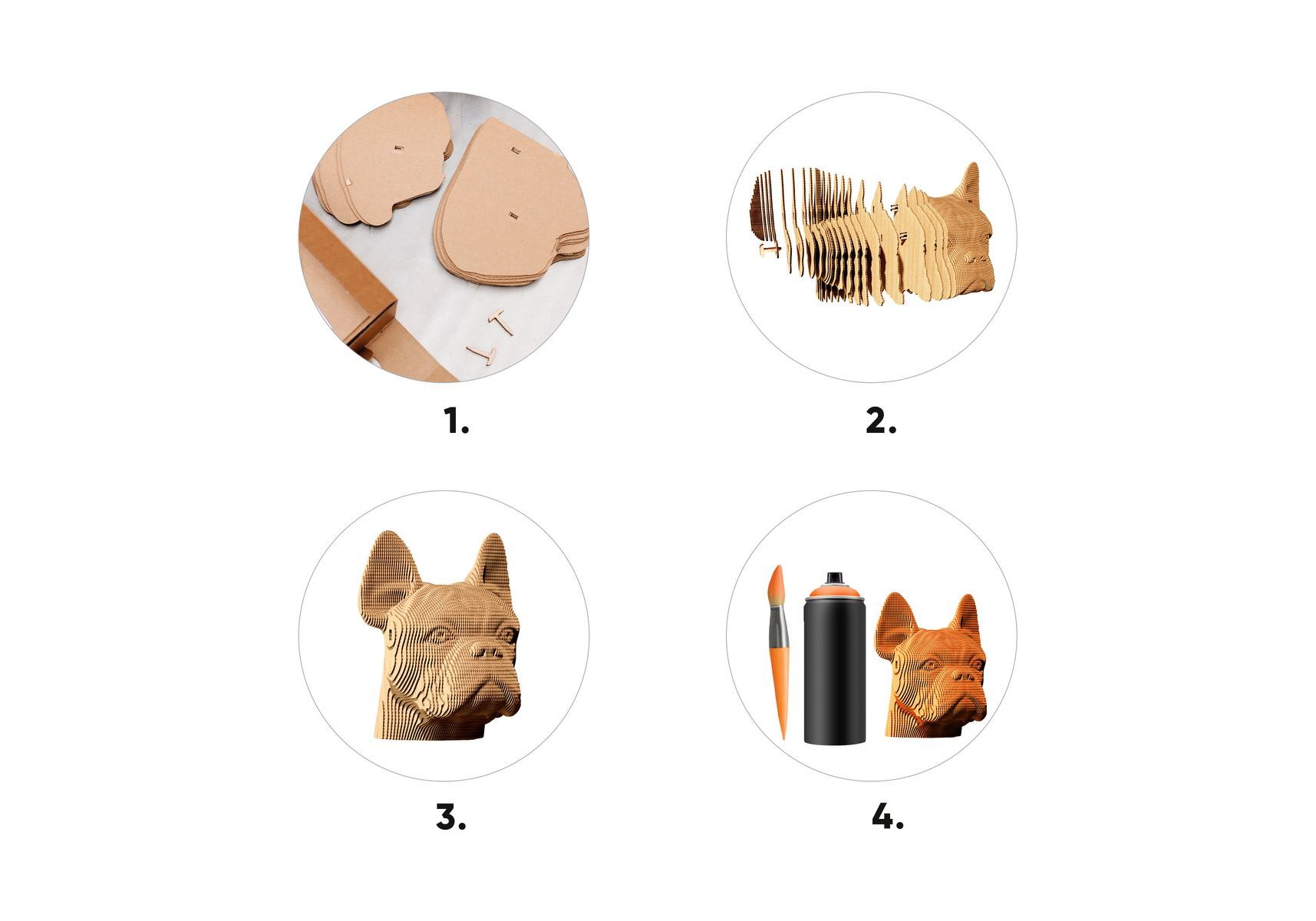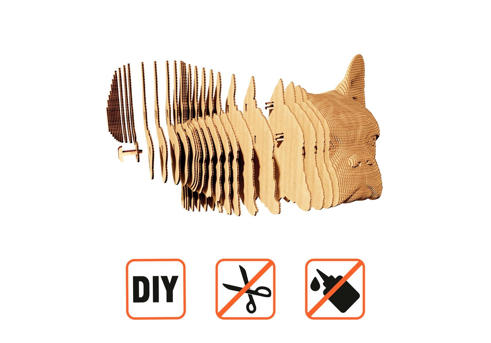 ЧТО ТАКОЕ CARTONIC? ЗD пазлы Cartonic — это простой и экологичный способ создать собственный образец картонного искусства. Тебя ждёт готовый набор для пошаговой сборки известной личности или объекта своими руками. Это будет легко как 1-2-3. Во время сборки ты буквально погрузишься внутрь культовой фигуры. А когда закончишь – то сможешь сделать свой артобъект еще более уникальным, раскрасив его, и наслаждаться им як декором дома. Но мы должны предупредить: как только ты соберешь этот пазл, тебе может понадобиться новый, потому что в этом процессе сложно остановиться. ПОЧЕМУ ЭТО ИКОНА? Джентльмен родом из Англии. На вид как милый пришелец, а в душе - маленький боец. Собака-антистресс, которую выбирают себе в компаньоны и Оззи Озборн, и Бред Питт. Если у тебя когда-нибудь появлялась мысль: «не взять ли и мне себе такую?», попробуй начать пока с чего-нибудь, что не будет сразу храпеть тебе на ухо — например, с картонной головы.