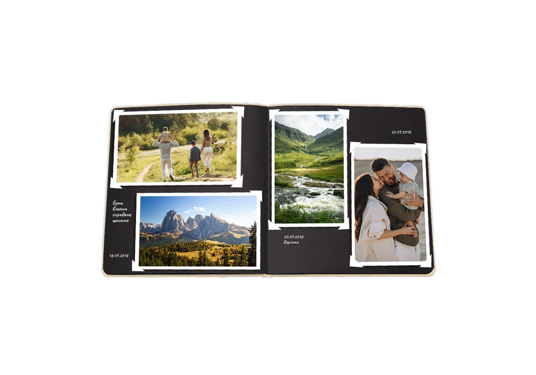 Новые фотоальбомы с черными страницами — новый повод напечатать любимые фото и создать собственный сторителлинг. С линейным или хаотическим сюжетом, о самых счастливых моментах или самых прикольных факапах — выбирать вам! Черные страницы в фотоальбоме можно описать тремя словами: стиль, атмосфера, красота. На самом деле, еще где-то 523 слова можно было бы подобрать, но основное — неизменное. Они станут идеальным дополнением ваших самых светлых приключений.