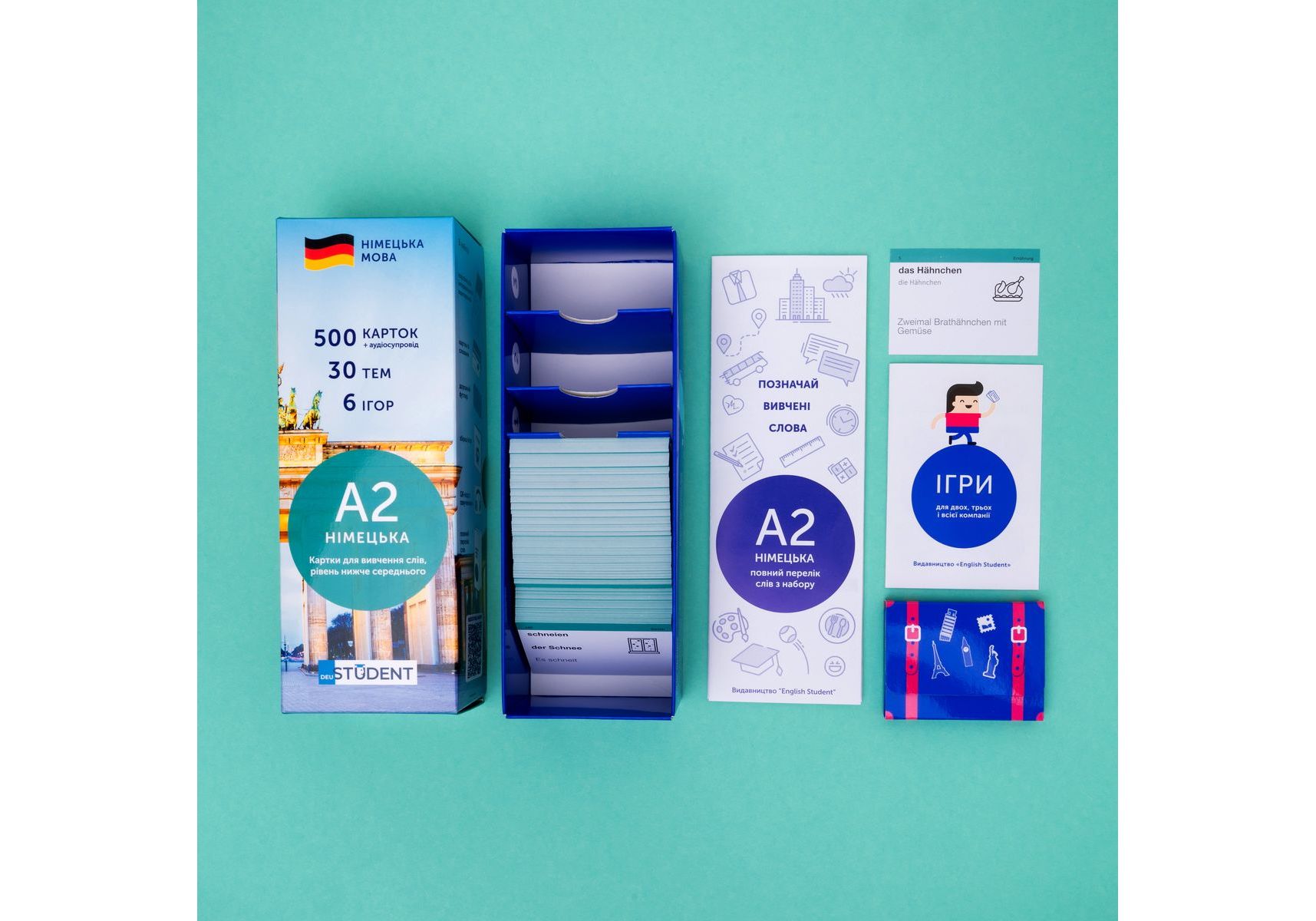 Карточки для изучения немецкого языка English Student - уровень А2 (500 карточек)