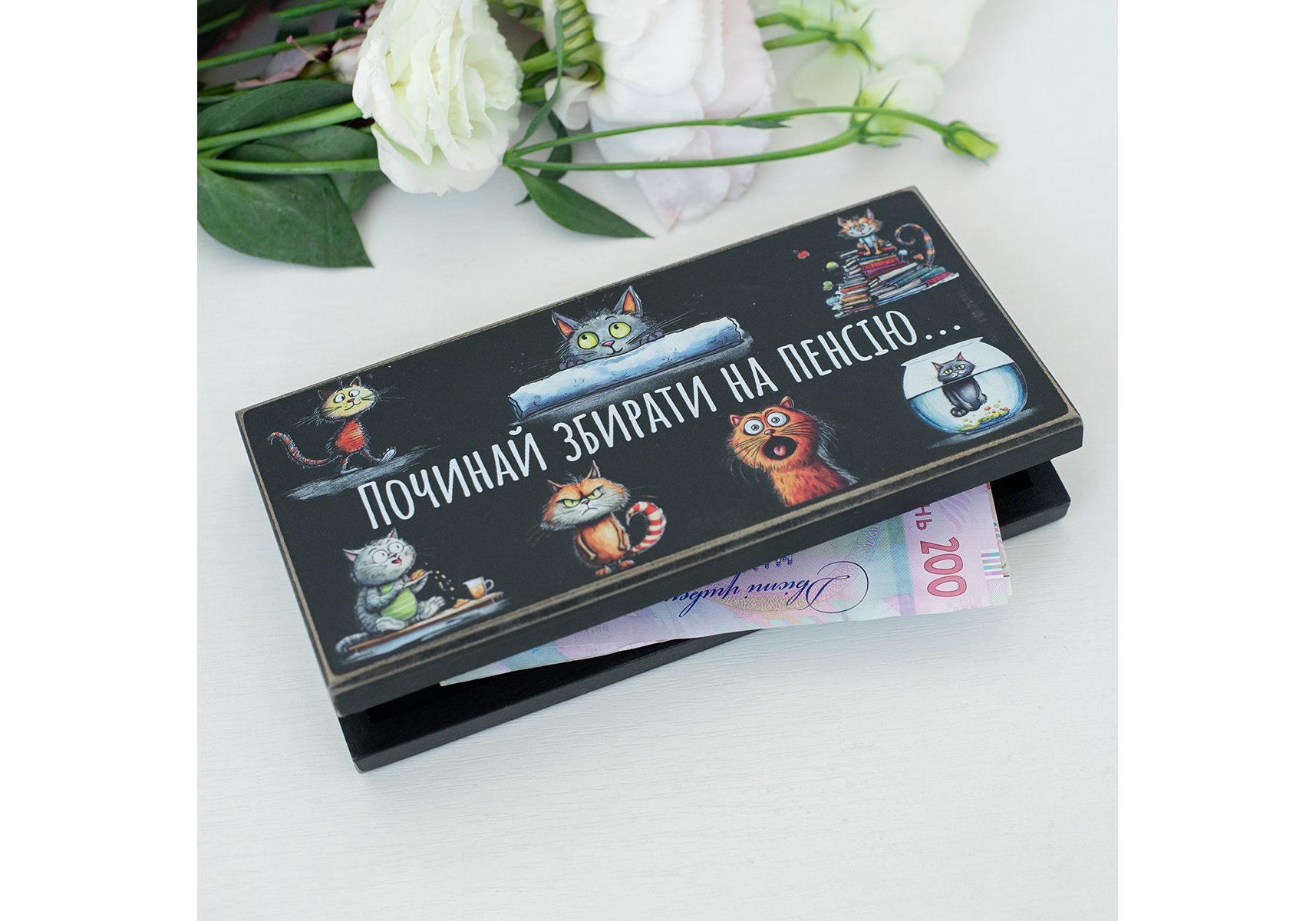 Купюрница "Починай збирати на пенсію" (чорная) Wood Posters