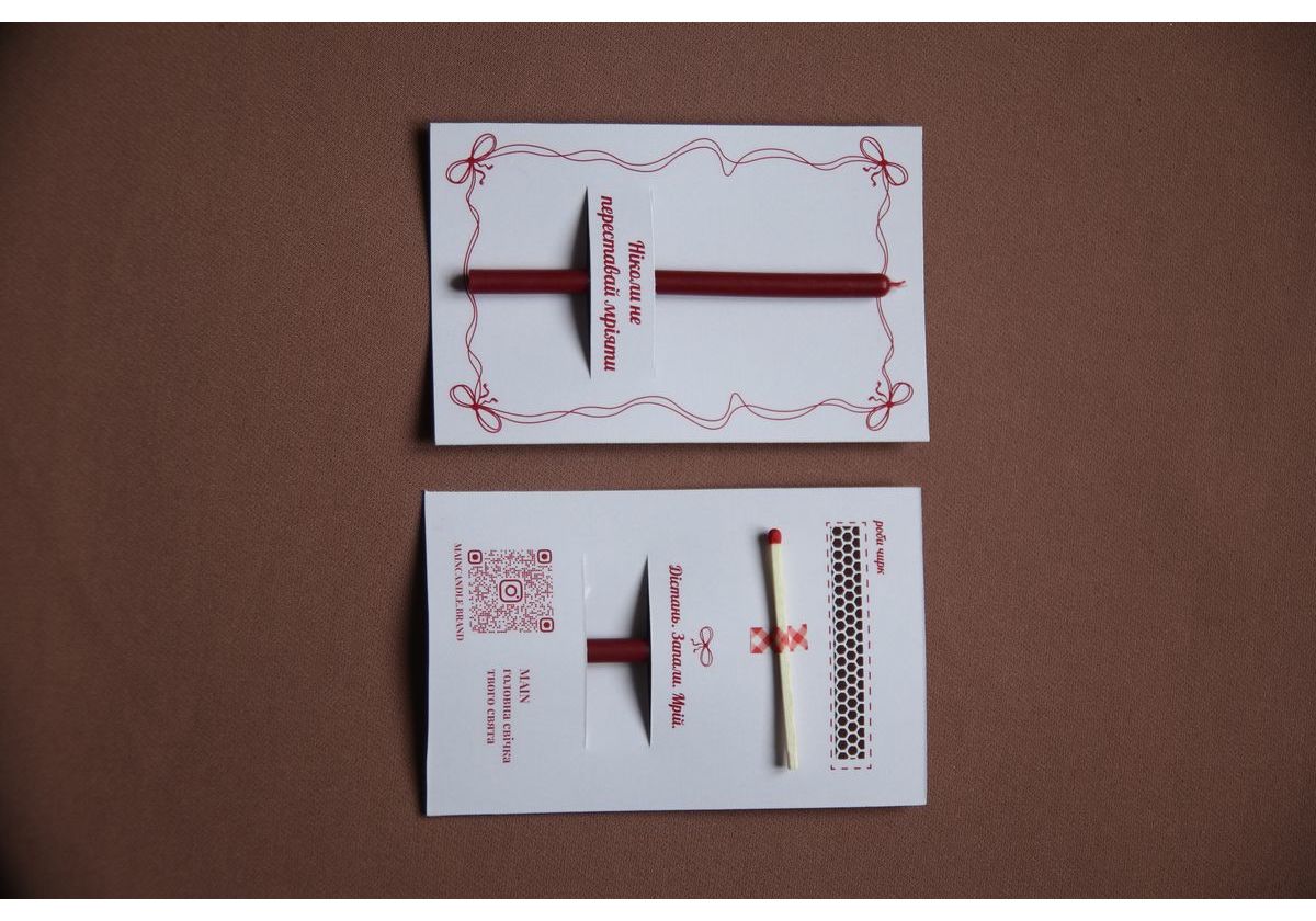 Дизайнерская открытка с натуральной свеча Ніколи не переставай мріяти MAINсandle brand