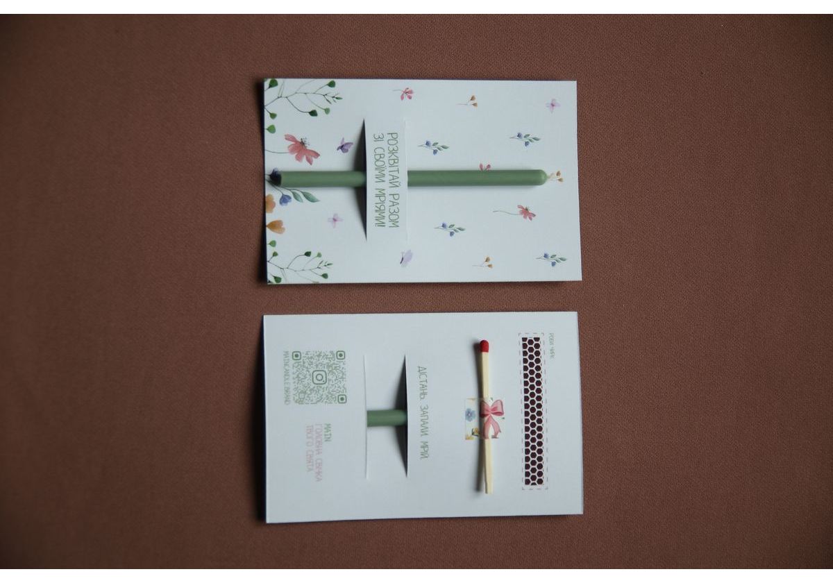 Эта открытка - это тот самый вариант. Внутри вы найдете натуральную свечку из пчелиноговоска, спичку и чиркало, чтоб сразу поджечь мечту.